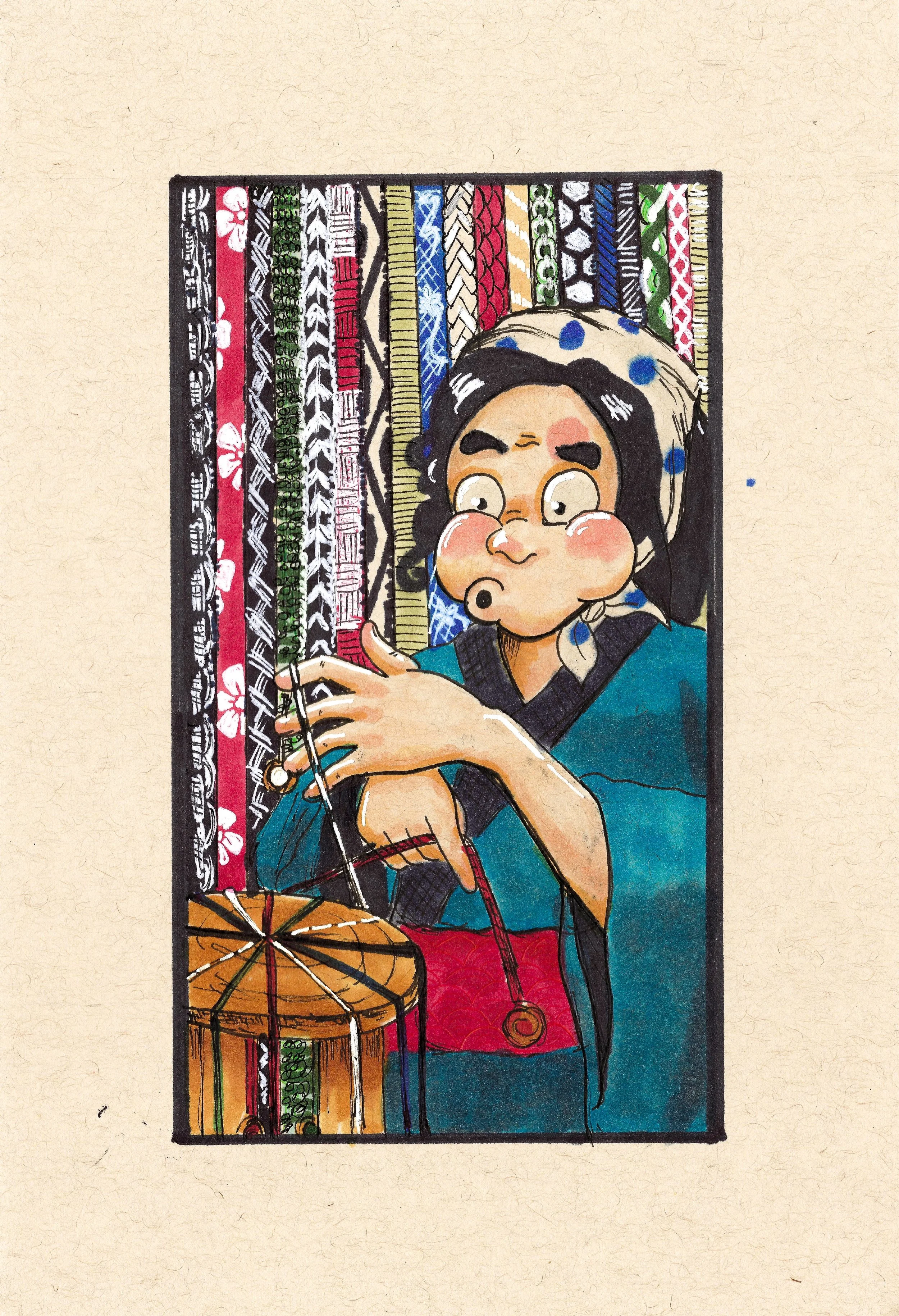 Hyottoko Kumihimo- 5.5x7.5 (SOLD)
